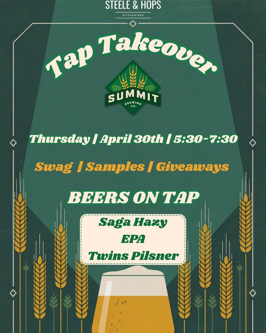 Tap Takeover with Summit! Great beer, samples, and giveaways.